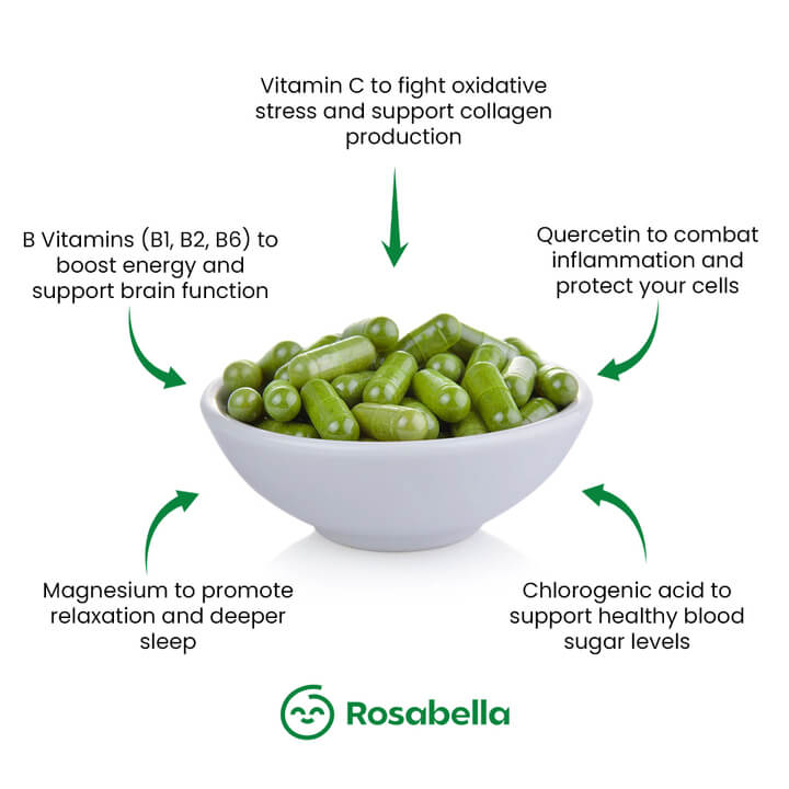 Known as the “Miracle Tree,” Moringa is packed with over 90 essential nutrients that restore balance and energy. Rosabella Moringa helps your body: